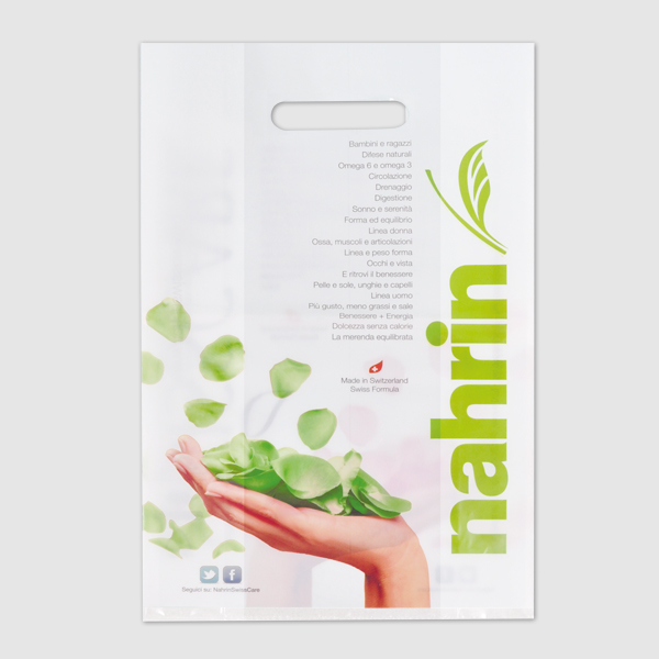 I sacchetti con manici fustellati (a FAGIOLO) sono adatti per qualsiasi tipo di prodotto: cosmetici, medicinali, oggettistica e abbigliamento. Sono resistenti e dal design semplice.
